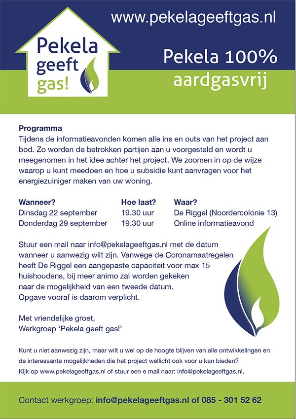 Dinsdag 22 en donderdag 24 september 2020 organiseert de werkgroep ‘Pekela geeft gas!’ informatieavonden voor alle bewoners tussen Koppelsluis en … Lees meer