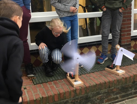 En er werden verschillende maten en vormen wieken geknipt om te kijken waarmee we de meeste windenergie konden opwekken.