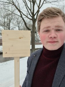 Deze bordjes worden gemaakt door Marko Nieland. Hij wilde graag zijn steentje bijdragen aan de zichtbaarheid van het project. Hij woont al zijn hele leven in Boven Pekela, ging er naar de basisschool en helpt nu als vrijwilliger bij o.a. de kinderspelweek. Hij is tweedejaars student aan het Alfa College in Groningen en volgt de niveau 4-opleiding ‘Technicus Engineering Installatie en Elektrotechniek’.